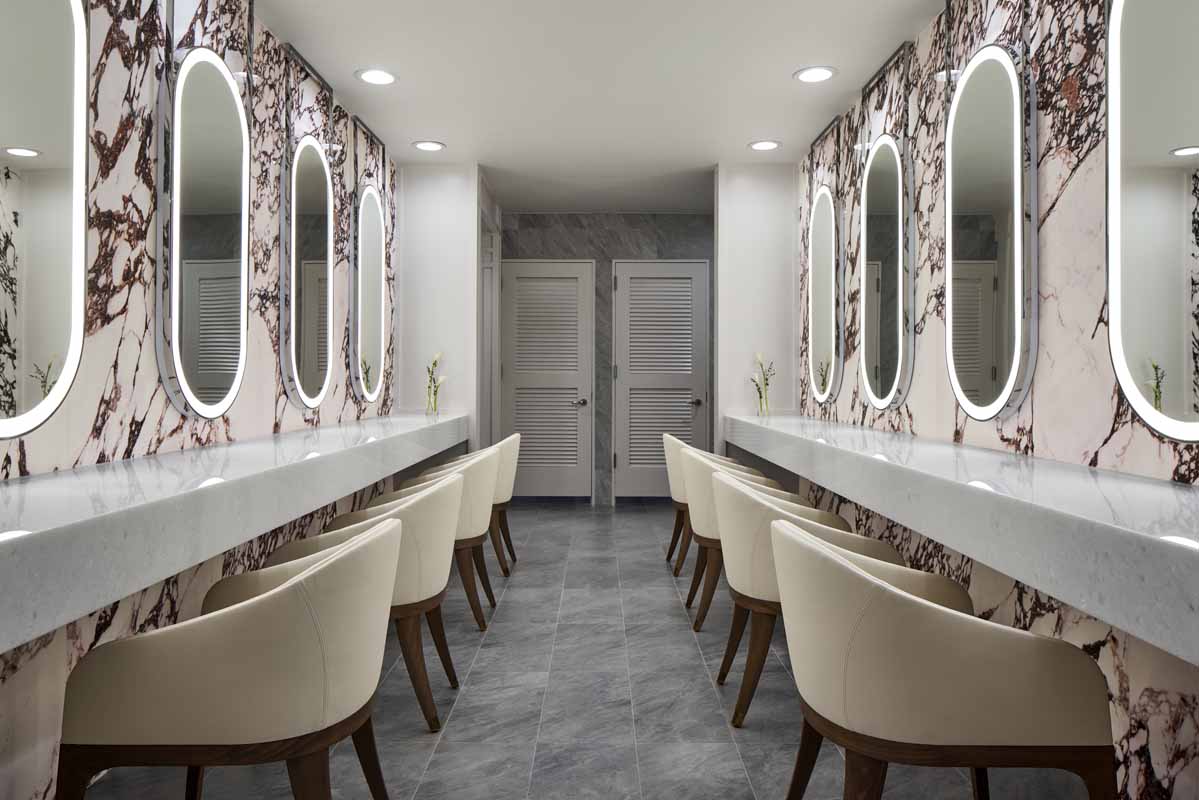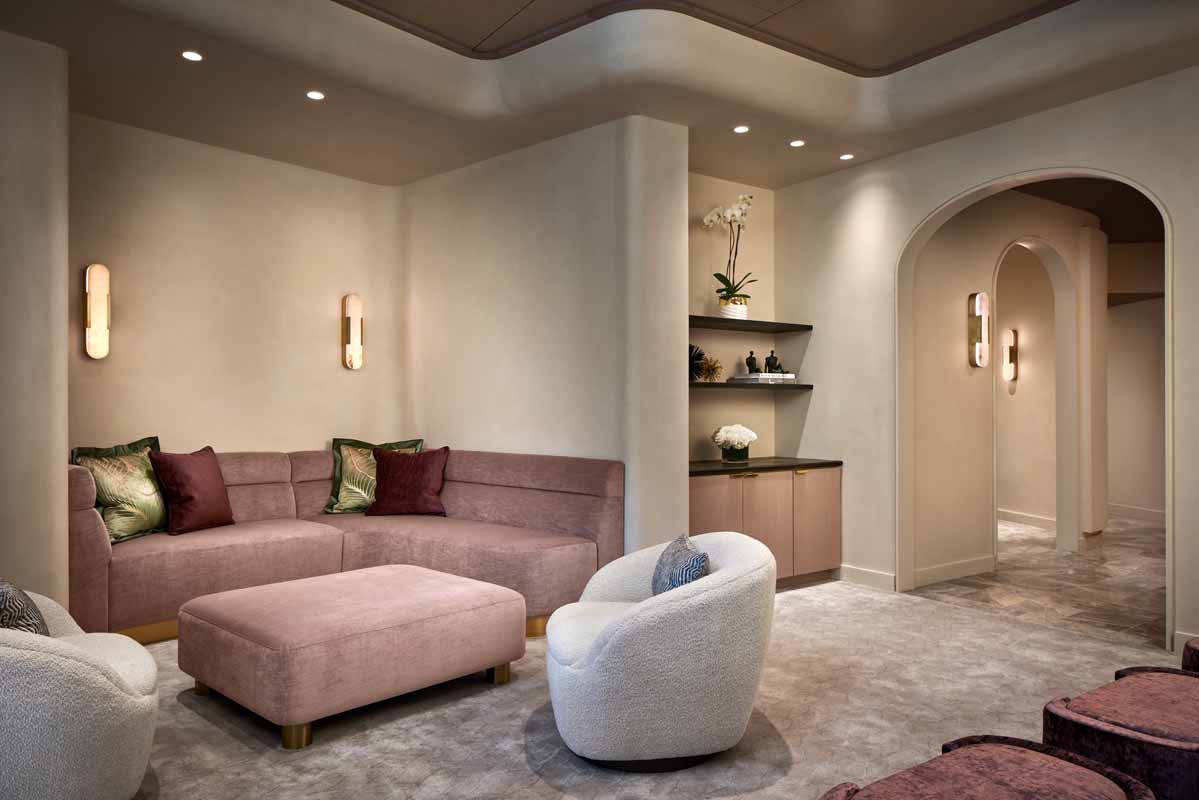 The spa offers a serene and sophisticated environment, inspired by nature, featuring rounded contours, earth tones, and ambient lighting to create a calm atmosphere from the moment a guest enters.